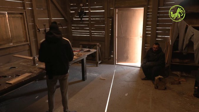 On je izašao po hladnoći da cepa drva, a sa sobom je poveo i novog učesnika Marka kako bi mu pokazao što više poslova na imanju.