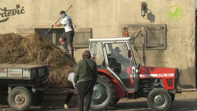 On je potom otkačio prikolicu kako bi farmeri natovarili đubre, što se radi jednom mesečno.