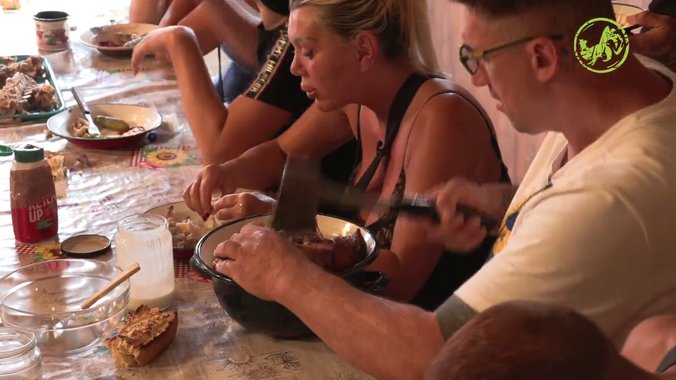 Tokom današnjeg ručka farmeri su iskoristili ostatke jučerašnje bogate trpeze, pa su pojeli ostatke praseta. Kristijan Golubović uzeo je sekiru u ruke, pa umesto drva rešio je da njom iseče prase i posluži ga cimerima.