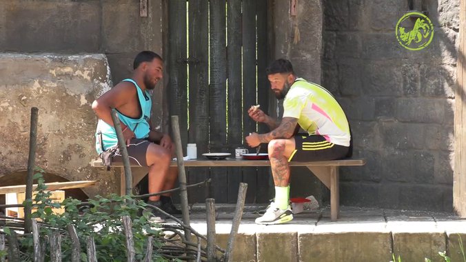 To su, naravno - Nikola Lakić i Peca Lazić koji su svoje tanjire odneli napolje, i gde su jeli zajedno.