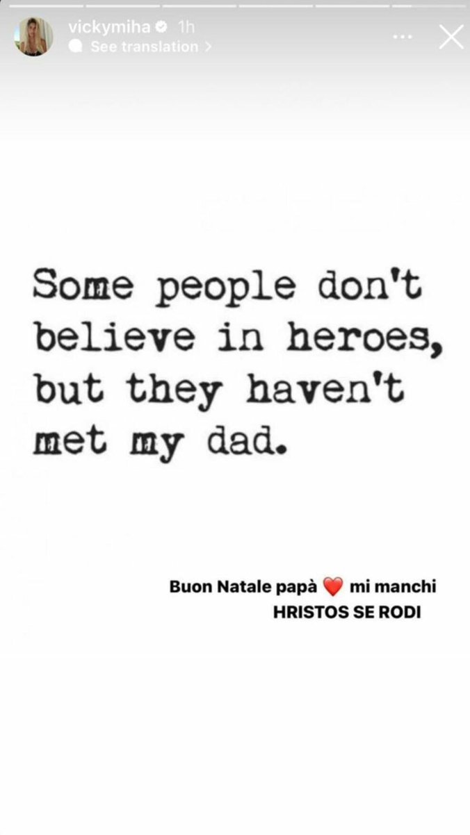 Mihina naslednica prvo je stavila citat: "Neki ljudi ne veruju u heroje, ali oni nisu upoznali mog tatu" na italijanskom, a onda je uz sve dodala i srpski jezik.