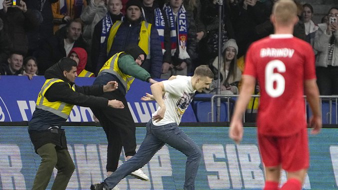 Tek kasnije je otkriveno da jedan navijač preskočio ogradu, a potom utrčao na teren, a obezbeđenje je moralo da se namuči kako bi ga uhvatilo. Uz dosta muke, redari su uspeli da stignu navijača i izbace ga sa terena.