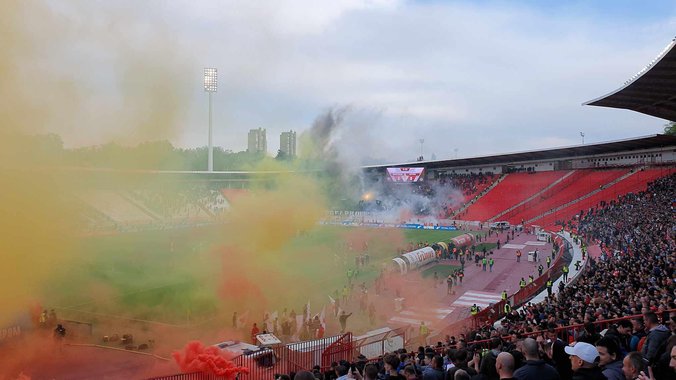 Razlog time bile su bakljade Delija na severnoj tribini i Grobara na južnoj.