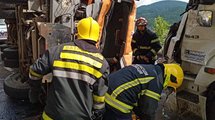 TEŠKA SAOBRAĆAJNA NESREĆA KOD GROBLJA ORLOVAČA: Kamion udario u nadvožnjak, vozač Hitno prevezen u Urgentni