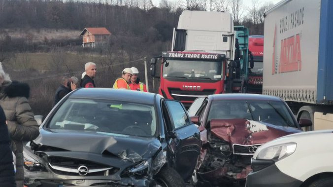Na magistralnom putu Pirot-Bela Palanka jutros oko sedam časova došlo je do sudara dva vozila na kružnom toku kod naplatne rampe.