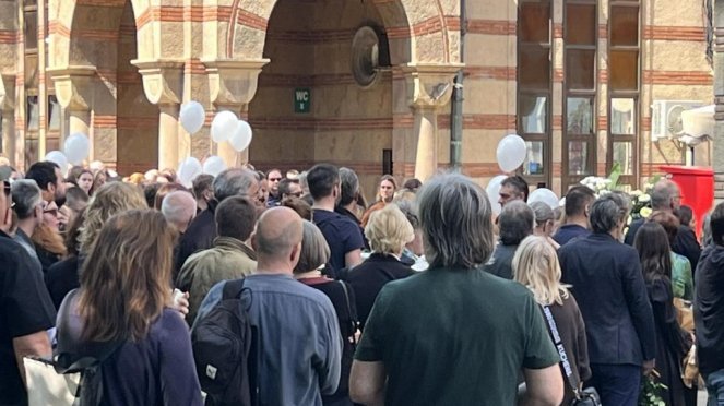 Članovi porodice, prijatelji, komšije i školski drugovi okupili su se ispred kapele na Novom groblju u Beogradu kako bi odali počast i na večni počinak ispratili M. A, još jednu žrtvu pomahnitalog Koste K.