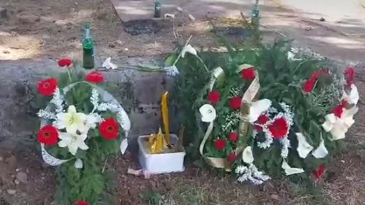Na mestu stravičnog zločina mogu se videti krvave gaze, lekarske makaze, upaljene sveće i mnoštvo cevća, venaca...