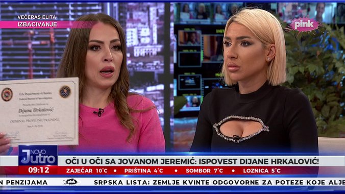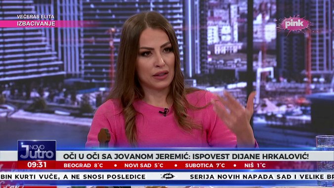 Voditeljka "Novog vikend jutra", Jovana Jeremić, ekskluzivno je ugostila bivšu državnu sekretarku MUP-a, Dijanu Hrkalović, koja je u svojoj ispovesti za TV Pink progovorila o optužnici koja je podignuta protiv nje, kao i o tome da li je njeno ime povezano, kao što se u opozicionim medijima navodi, sa škaljarskim ili pak, kavačkim klanom.