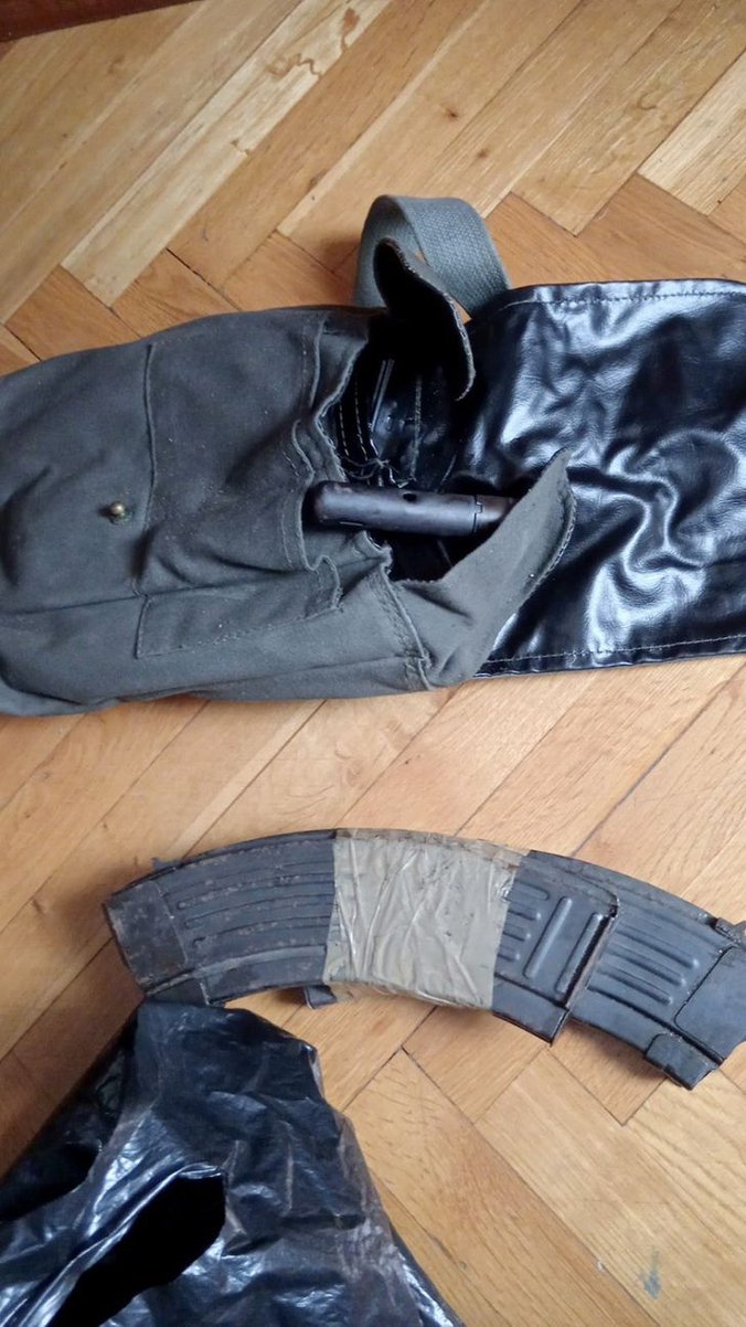Prilikom pretresa stana i drugih prostorija osumnjičenog, pronađena je i automatska puška, gasni pištolj, četiri okvira za automatsku pušku i određena količina municije.