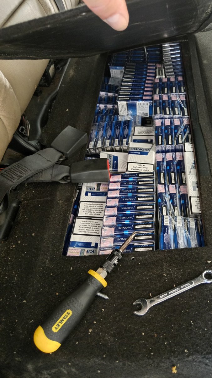Identičan bunker ispunjen paklicama cigareta pronađen je paralelno sa prvim, u podu automobila iza vozačkog sedišta.