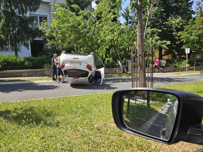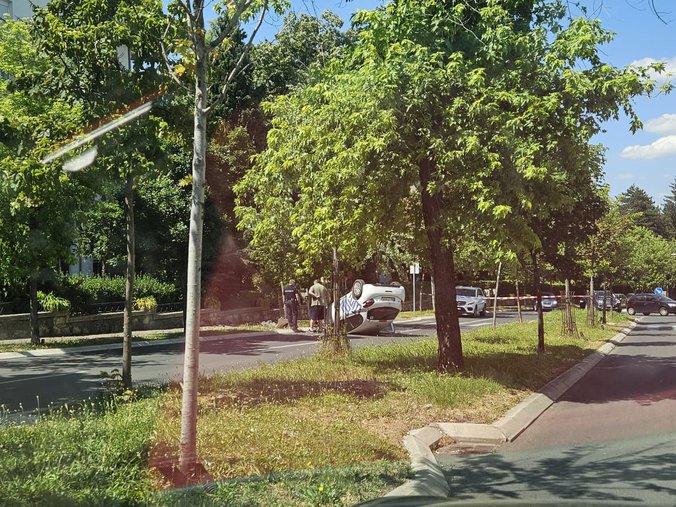 Automobil koji je označen da ga vozi vozač sa probnom vozačkom dozvolom prevrno se na krov u Bulevaru Kneza Aleksandra Karađorđevića.