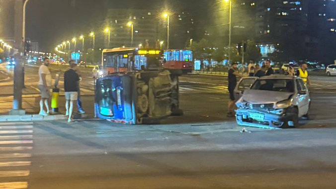 Automobil na ugli Jurija Gagarina i Dr Ivana Ribara na Novom Beogradu prevrnuo se na bok, iz još uvek neutvrđenih razloga.