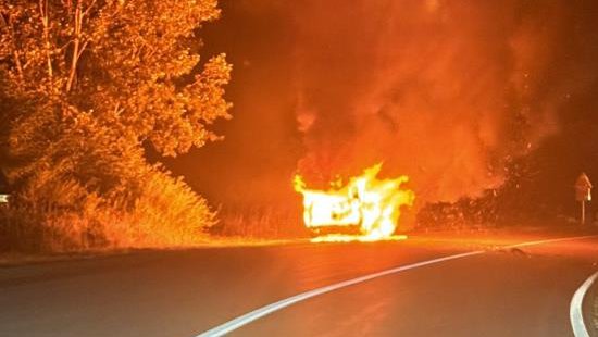 Ogromna buktinja guta vozilo.