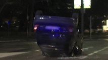 Kako se vidi na video snimku sa lica mesta koji kruži društvenim mrežama, automobil marke BMW ostao je da leži prevrnut na ulazu u pomenutu prodavnicu.
