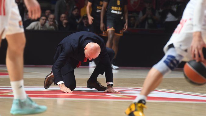 Podsetimo, Zvezda je dobila taj meč veoma ubedljivo (92:68), a Obradović je uspeo da ga obeleži emotivnim momentom prilikom ulaska na parket kada je kleknuo na centru i poljubio grb crveno-belih.
