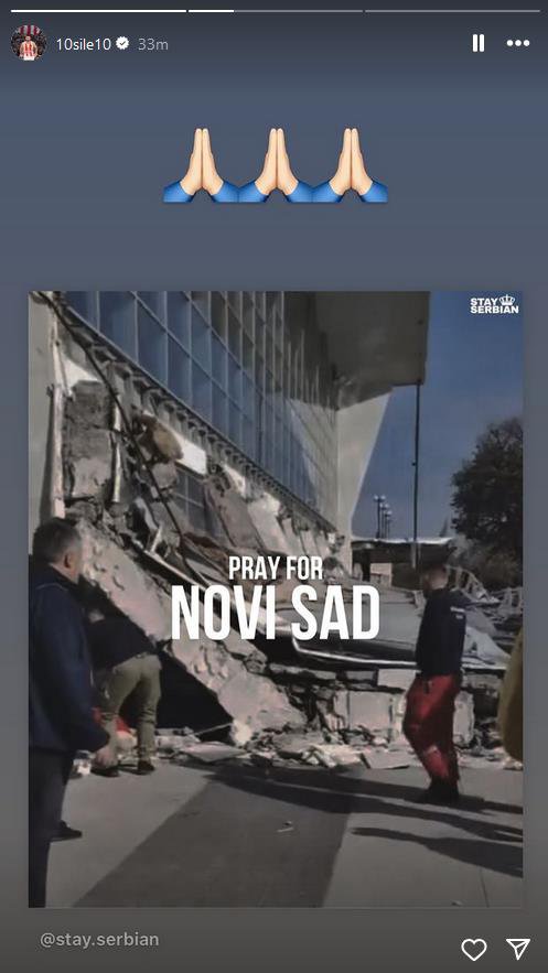 Kapiten Crvene zvezde Branko Lazić oglasio se na društvenim mrežama povodom tragedije koja se danas dogodila u Novom Sadu kada je posle pada dela zida stare železničke stanice poginulo nekoliko osoba.