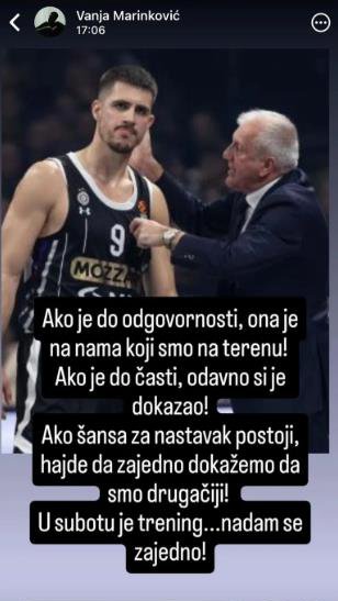 Sada se tim povodom oglasio i Vanja Marinković, koji je na Whatsapp storiju poslao poruku Željku Obradoviću.
