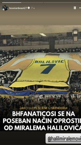 On je objavio koreografiju navijača posvećenu košarkašu Miralemu Haliloviću koji se oprostio od dresa reprezentacije.