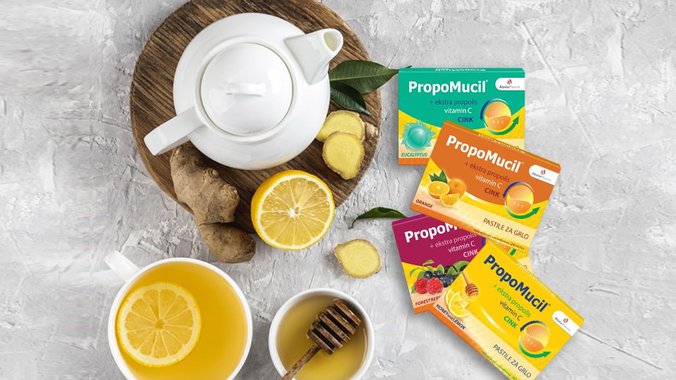 PropoMucil® pastile sadrže cink, vitamin C, propolis i N-acetilcistein, koji sprečavaju vezivanje virusa za sluznicu grla i pojačavaju imunitet, a propolis pomaže u eliminaciji virusa.Činjenica: Pranje ruku je najbolja prevencija prehlade i gripa i prirodna odbrana od virusa. Takođe, redovno pranje ruku i korišćenje dezificijensa na bazi alkohola sprečavaju širenje virusa.Činjenica: Đumbir doprinosi prevenciji prehlade i gripa, a sastojak đumbira, gingerol će ublažiti bilo kakvo zapaljenje koje postoji na sluzokoži. Đumbir u kombinaciji sa medom će stimulisati vaš imunitet. Vitamin C će samo pojačati imunološko dejstvo đumbira. Da biste sprečili razvoj simptoma virusnih infekcija i doprineli jačanju vašeg imunog odgovora, u apoteci imate sve spremno i spakovano u jednoj kesici, PropoMucil® PretPrehlada- kombinacija prirodnih sastojaka đumbira, meda i propolisa.