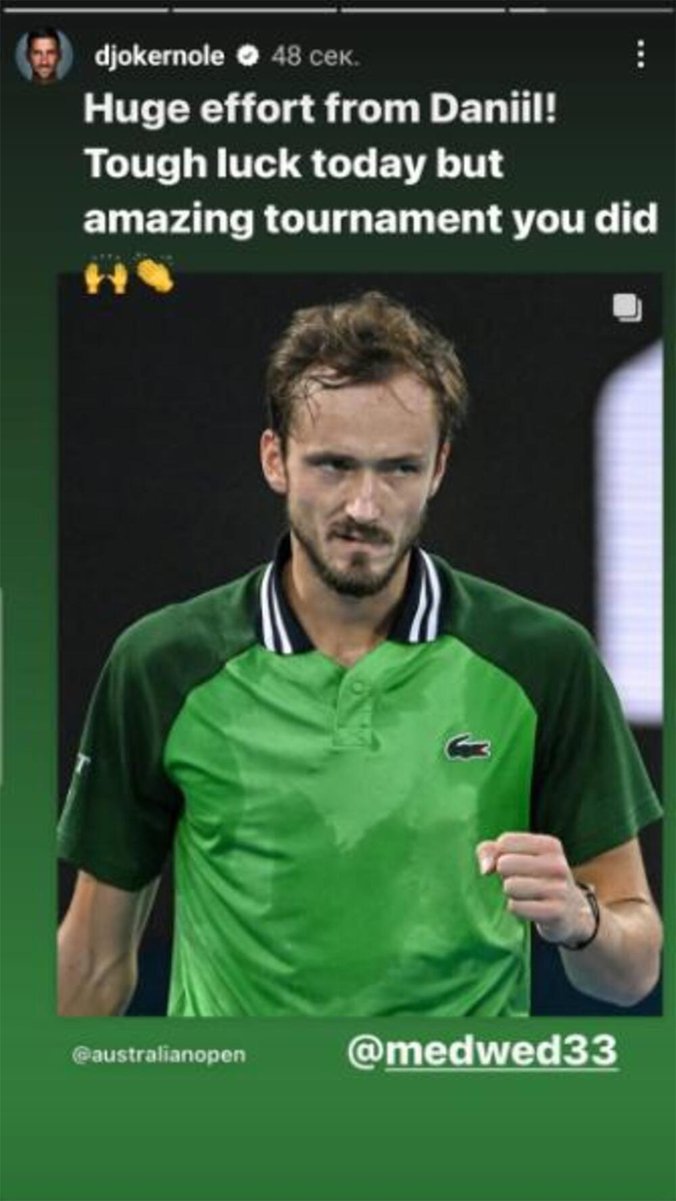 "Odličan trud Danila! Nije bilo sreće danas, ali imao si čudesan turnir", poručio je Đoković.