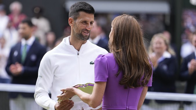 Kejt Midlton je na finale došla u dugačkoj ljubičastoj haljini, sve vreme su je u korak pratili fotografi i snimatelji, a potom joj je pripala čast da uruči trofeje pobedniku i poraženom finalisti. Novak Đoković je tu pokazao džentlmenstvo jer se poklonio pred britanskom princezom, iako je njena porodica zapravo "prešla" da navija za Karlosa Alkaraza od prošle godine.
