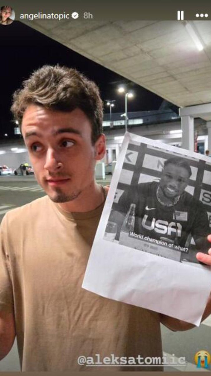 Aleksin potez oduševio je Angelinu, koja je odmah na svom Instagram storiju objavila njegovu fotografiju uz emotikon koji plače.
