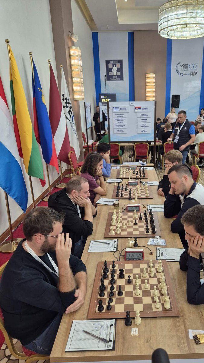 Na EP u šahu u Batumiju, odigrano je četvrto kolo, u kome je naš muški tim nadigrao reprezentaciju Grčke rezultatom 2,5:1.5. Dame su kao i juče igrale nerešeno, ovoga puta sa selekcijom Italije 2:2.