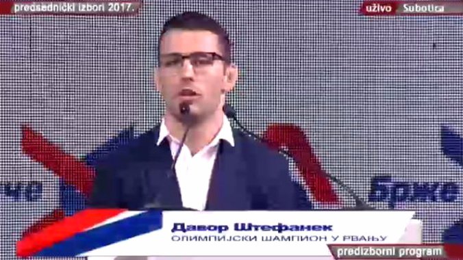 17. 40 - Pristalicama se na mitingu obratio i srpski rvač i reprezentativac Davor Štefanek, koje je rekao da mu je mnogo lakše bilo u Riju nego da se obraća na mitingu: "Nisam političar, ali moram da podržim ljude koji su podržali nas sportiste". Kako kaže bez pomoći države, mojih roditelja i grada Subotice nikada ne bi bilo olimpijski šampion.