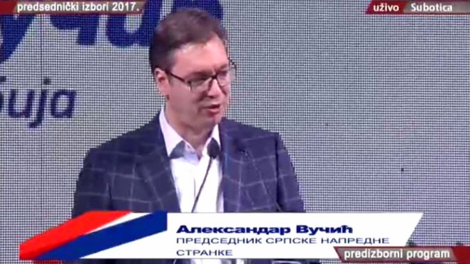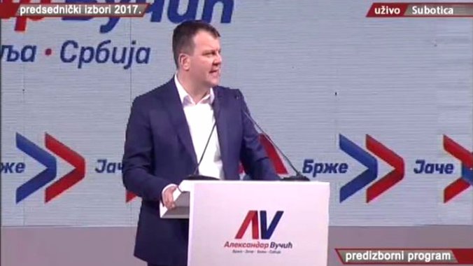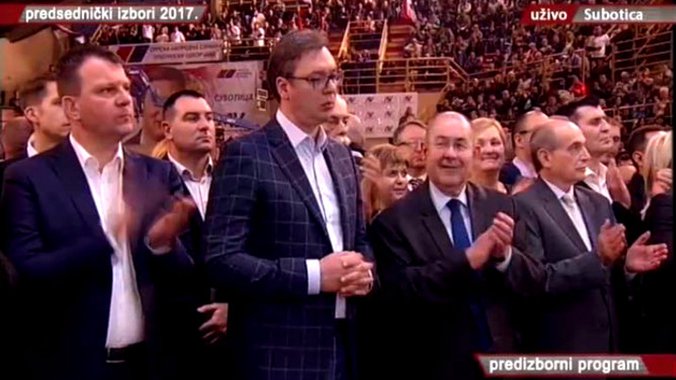 17.45 - Premijer Srbije i predsednički kandidat SNS Aleksandar Vučić je izašao je na binu praćen ovacijama i aplauzom. Vučić je rekao da je ponosan na to ko je sve pre njega govorio, ističući sportske zasluge Štefaneka i Sagmajstera.