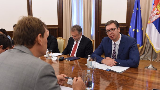 Predsednik Republike Srbije Aleksandar Vučić sastao se danas sa šefom Misije Međunarodnog monetarnog fonda Džejmsom Rufom i predstavnicima tehničke Misije MMF, sa kojima je razgovarao o aktuelnom aranžmanu ovog fonda u Republici Srbiji.