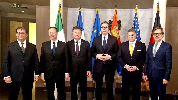 - Predsednik Republike Srbije Aleksandar Vučić sastao se sa specijalnim predstavnikom EU za dijalog Beograda i Prištine i druga regionalna pitanja Zapadnog Balkana Miroslavom Lajčakom, zamenikom pomoćnika državnog sekretara i specijalnim izaslanikom SAD za Zapadni Balkan Gabrijelom Eskobarom, savetnicima za spoljnu i bezbednosnu politiku predsednika Republike Francuske i kancelara Savezne Republike Nemačke, Emanuelom Bonom i Jensom Pletnerom i diplomatskim savetnikom predsednika Vlade Republike Italije Frančeskom Talom - stoji na zvaničnoj instagram stranici buducnostsrbijeav.