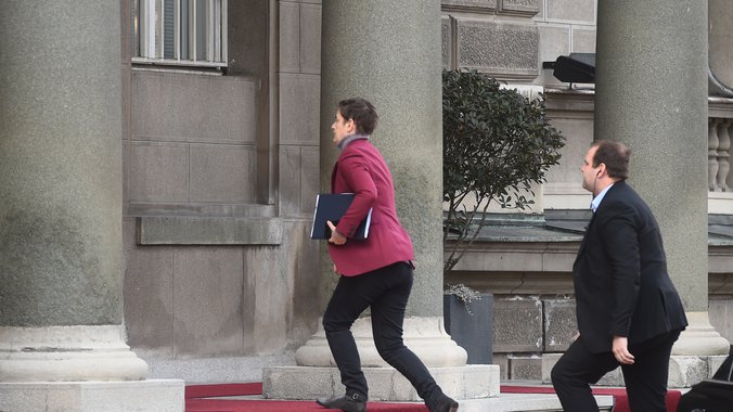 Premijerka Ana Brnabić i ministri iz redova SNS došli su danas oko 12.00 časova u Predsedništvo Srbije gde treba da se sastanu sa predsednikom Aleksandrom Vučićem.