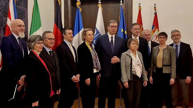 Predsednik Republike Srbije Aleksandar Vučić sastao se danas sa ambasadorima zemalja Kvinte pri OEBS u Beču i najvišim diplomatskim predstavnicima tih zemalja u Beogradu.