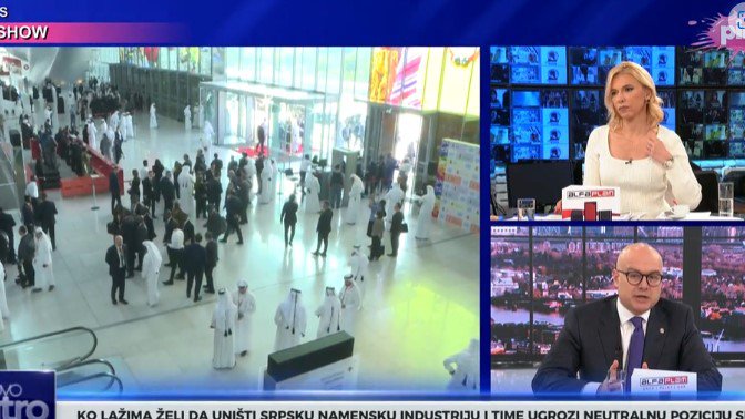 -Mnogo važnih poslova i kontakata je ostvareno, bitno je da ste prisutni i konkurentni. A za nas je najvažnije da smo zaključili kupovinu više hiljada dronova kamikaza iz Arapskih Emirata koji će sukcesivno biti isporučivani, da će do kraja godine biti isporučena prva količina dronova. Mi smo sada spremili paket od 400 miliona evra, dodatnih sredstava koji nisu uz budžeta, koja se plasiraju delimično u namensku industriju. To je 100 miliona evra koje idu u nove pogone i tehnologiju, proizvodne mašine. Ministarstvo odbrane i Ministarstvo finansija će to strogo kontrolisati. I 300 miliona spremamo paket za naoružanje za Vojsku Srbije. To će biti veliki podstrek za namensku industriju. Pomažemo i razvijamo te fabrike i krajeve. Znate šta znači Krušik ili ceo kompleks Zastave ili FAP u Priboju koji da nema države ne bi opstao ni pola sata. Vodimo računa o svim delovima Srbije. To mora da se posmatra u širem aspektu- rekao je i dodao je da u političkom i medijskom prostoru Srbije postoje dve strane.
