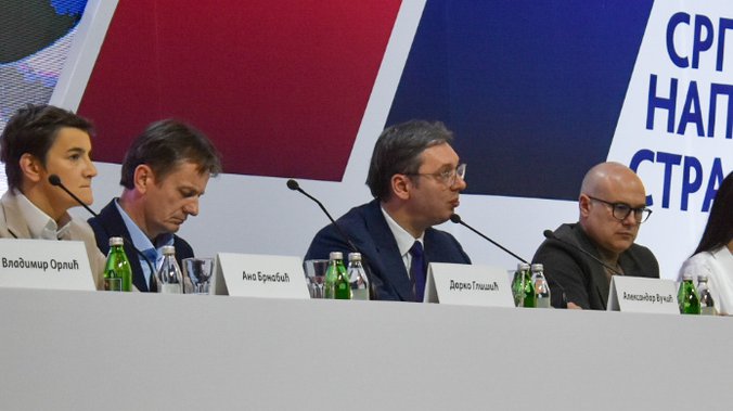 - Moja molba za vas je da se pripremimo za vreme koje nije lako za našu zemlju. Ja od sutra idem u obilazak Srbije, nadam se da ću moći da odem i na Kosovo i Metohiju - rekao je Vučić nakon čega je usledio veliki aplauz.