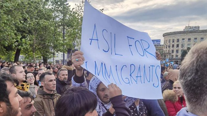 Sada su se na skupu pojavili i migranti. Oni se bore za azil.