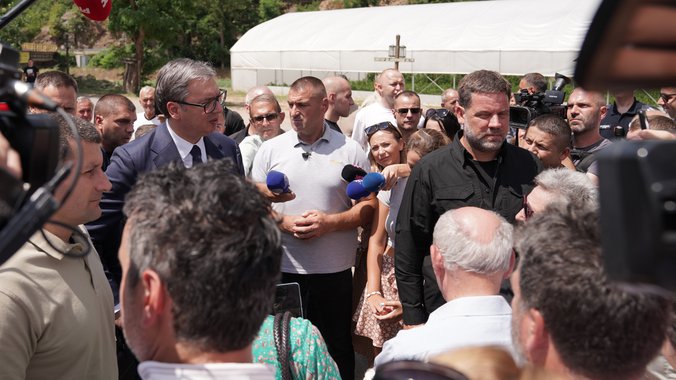 Predsednika Vučića je kod Prohora Pčinjskog sačekao veliki broj građana, sa kojima je razgovarao. Građani su izneli svoje lokalne probleme, vezane za put i vodu. Više njih mu je uručilo pisma.