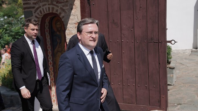 Pendarovski je položio venac kod spomen česme u porti manastira.