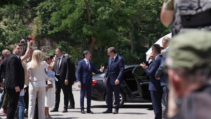 - Dobro došli ste u našu zemlju - rekao je Vučić, koji je dodao da će sa makedonskim kolegom otići na ručak u Trgovište, gde će nastaviti razgovore.