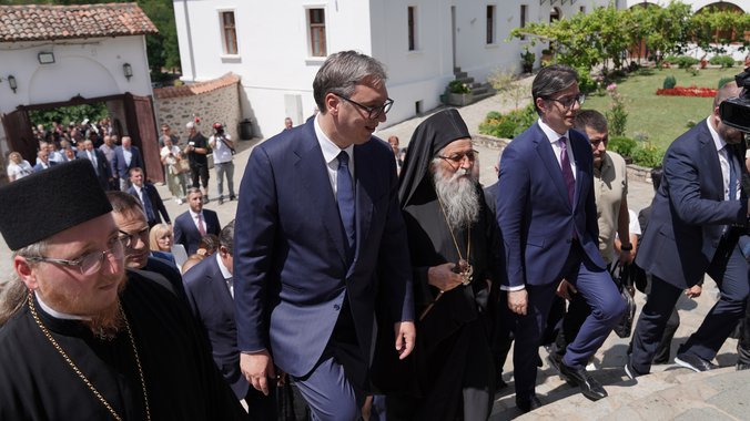 Dvojica predsednika najpre su obišla manastir Sveti Prohor Pčinjski. Njih su u manastiru dočekali vladika vranjski Pahomije i arhimandrit Metodije koji je iguman manastira.