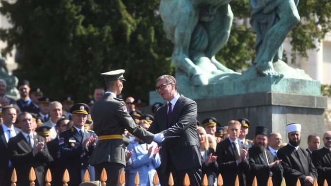 Podsetimo, predsednik Republike Srbije Aleksandar Vučić prisustvovao je juče svečanosti povodom promocije najmlađih oficira Vojske Srbije i tom prilikom se obratio okupljenima ispred Narodne skuštine Republike Srbije.