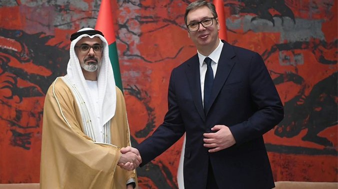 "Sa velikim zadovoljstvom dočekao sam princa prestolonaslednika Abu Dabija šeika Kaleda bin Zajeda, sina našeg iskrenog prijatelja, predsednika UAE Mohameda Bin Zajeda", naveo je Vučić.