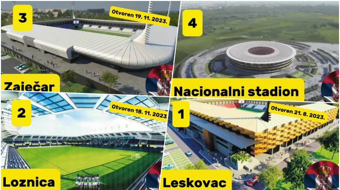 Ovo je treći stadion koji je otvoren ove godine, dok je njih 7 još u izgradnji, dok u vreme Dragana Đilasa nije sagrađen ni jedan.