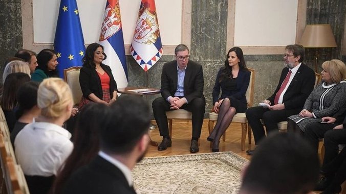 Predsednik Republike Srbije Aleksandar Vučić primio je danas, povodom Meseca romskog ženskog aktivizma, predstavnice Ženske romske mreže, predsednika Nacionalnog saveta romske nacionalne manjine, direktora Evropskog romskog centra za umetnost i druge predstavnike romske zajednice, sa kojima je razgovarao o najbitnijim problemima sa kojima se suočavaju u brojnim sferama društvenog života.