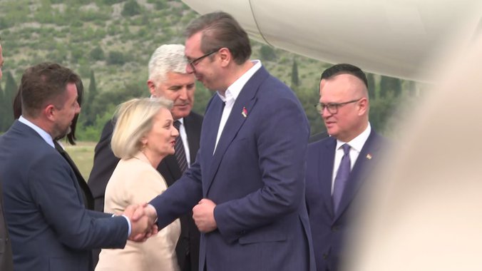 Aleksandar Vučić sleteo je u Mostar, prvim letom na relaciji Beograd - Mostar, koja je danas uspostavljena.
