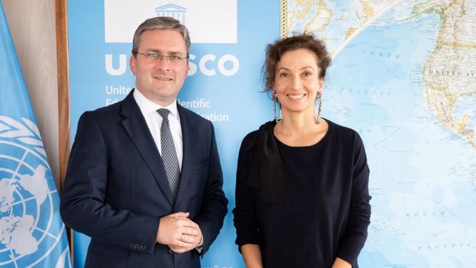 Ministar kulture Nikola Selaković sastao se sa generalnom direktorkom Uneska Odri Azule u Parizu, a na sastanku se razgovaralo o unapređenju dosadašnje saradnje sa Uneskom.