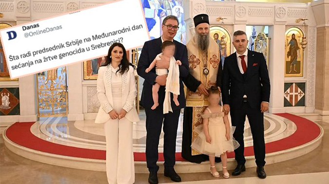 Ovoga puta, svojim podmuklim naslovom: Šta radi predsednik Srbije na Međunarodni dan sećanja na žrtve genocida u Srebrenici?, opozicioni "Danas" pokušao je da ismeje to što je predsednik Srbije danas krstio malog Lazara Jankovića sa Kosova i Metohije!