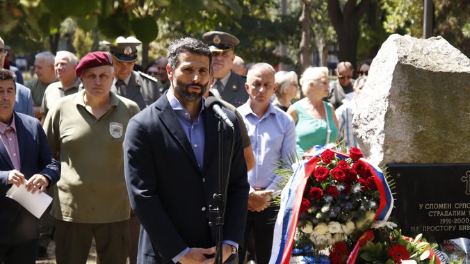 Gradonačelnik Beograda Aleksandar Šapić položio je danas venac na Spomenik srpskim žrtvama stradalim u ratovima od 1991. do 2000. godine na prostoru bivše Jugoslavije u Tašmajdanskom parku, povodom obeležavanja 29-godišnjice hrvatske akcije "Oluja" i istakao da se zločini nad Srbima ne smeju zaboraviti.