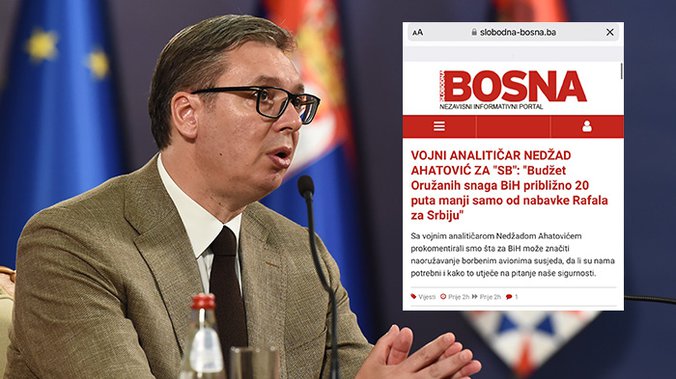 Tako je Slobodna Bosna objavila da je vojni analitičar Nedžad Ahatović rekao da "budžet Oružanih snaga BiH približno 20 puta manji samo od nabavke Rafala za Srbiju".