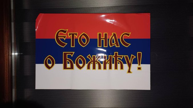 U opštinama na severu Kosova jutros su osvanuli plakati na kojima se nalazi srpska trobojka sa natpisom „Eto nas o Božiću“.